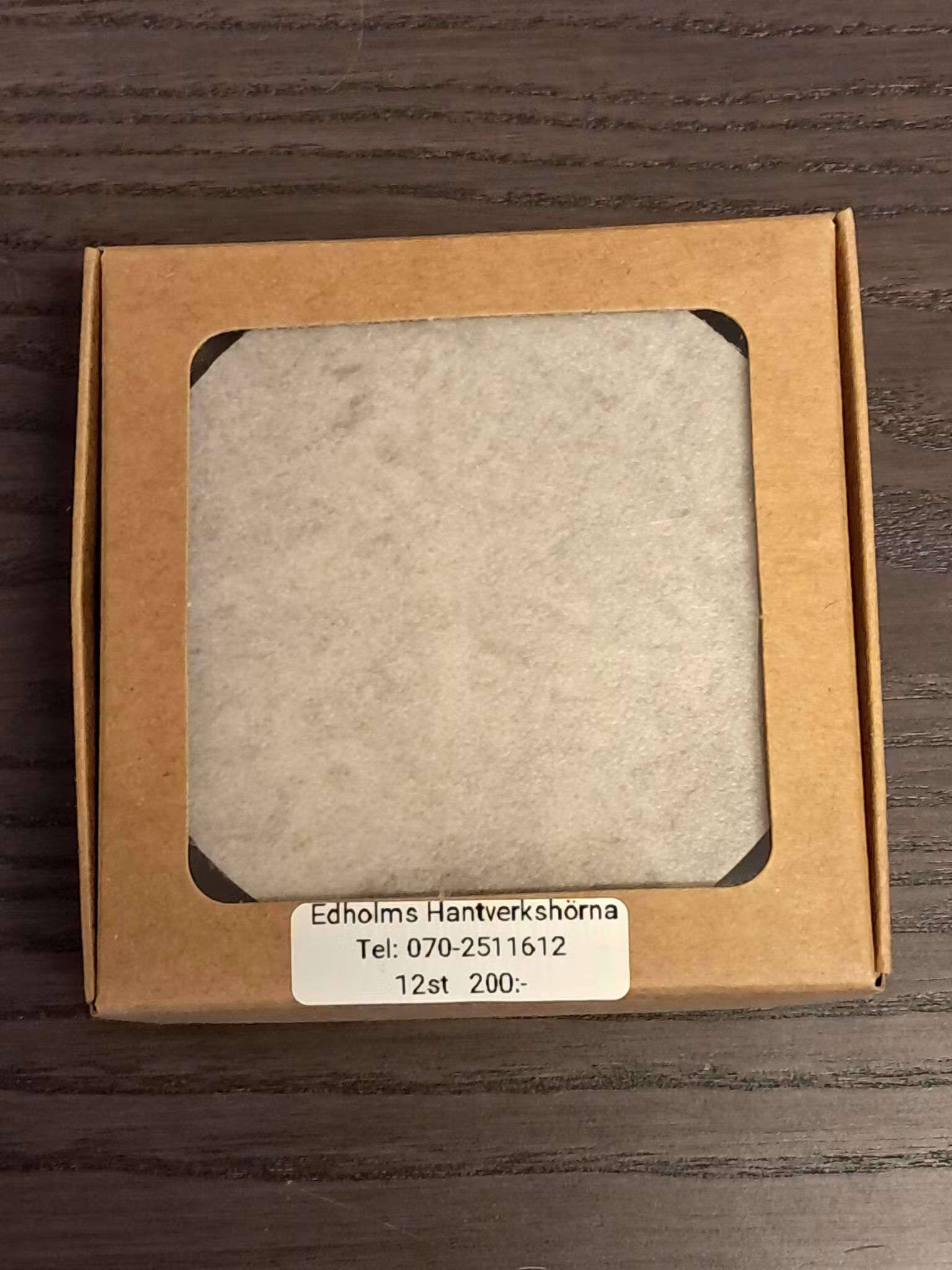 Handstansade runda glasunderlägg med tyg på baksidanMått: 9 cm i diameterMaterial: vinylFörpackningen innehåller 12 st glasunderlägg