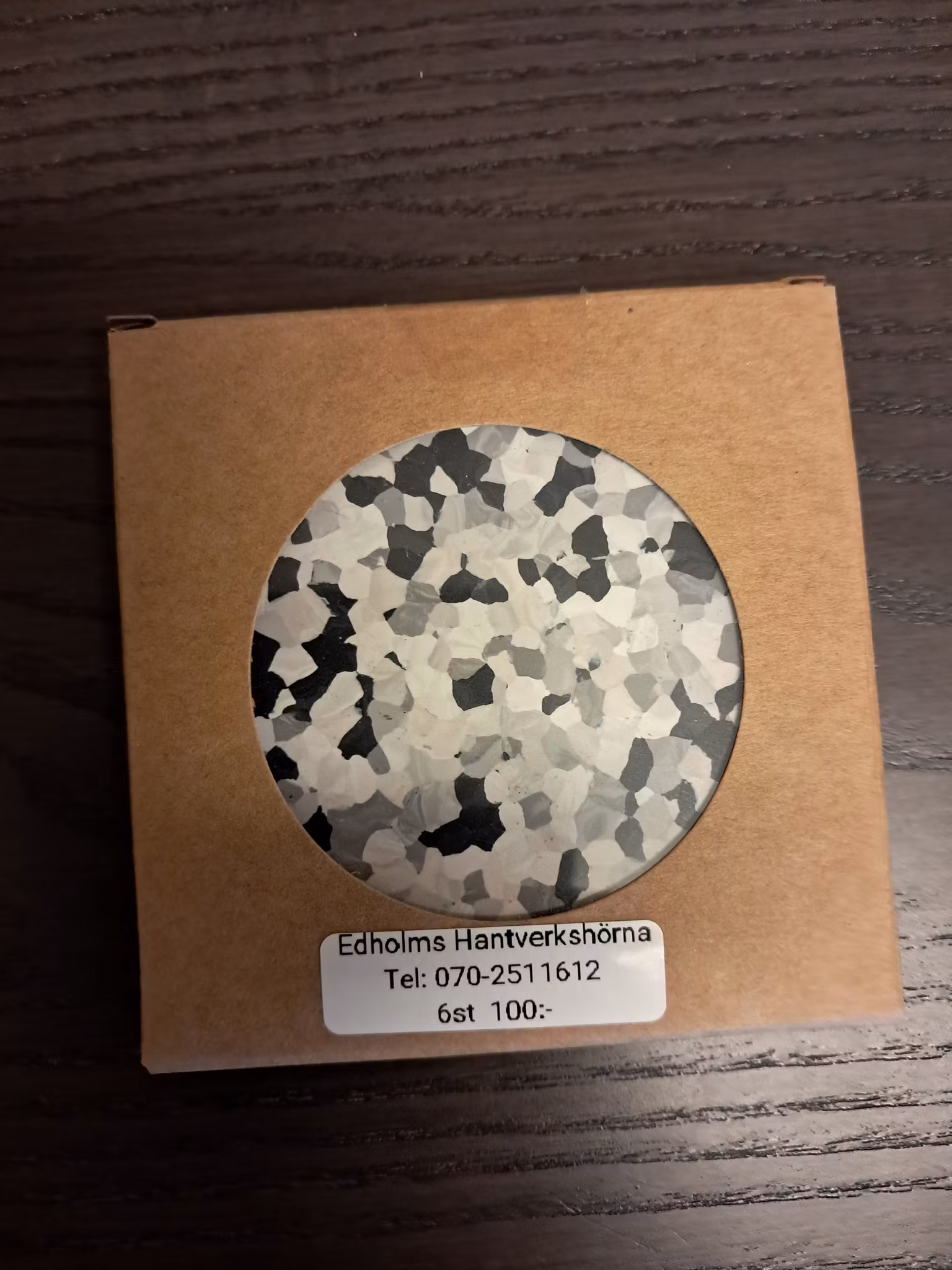 Handstansade runda glasunderläggMått: 9 cm i diameterMaterial: vinylFörpackningen innehåller 6 st glasunderlägg