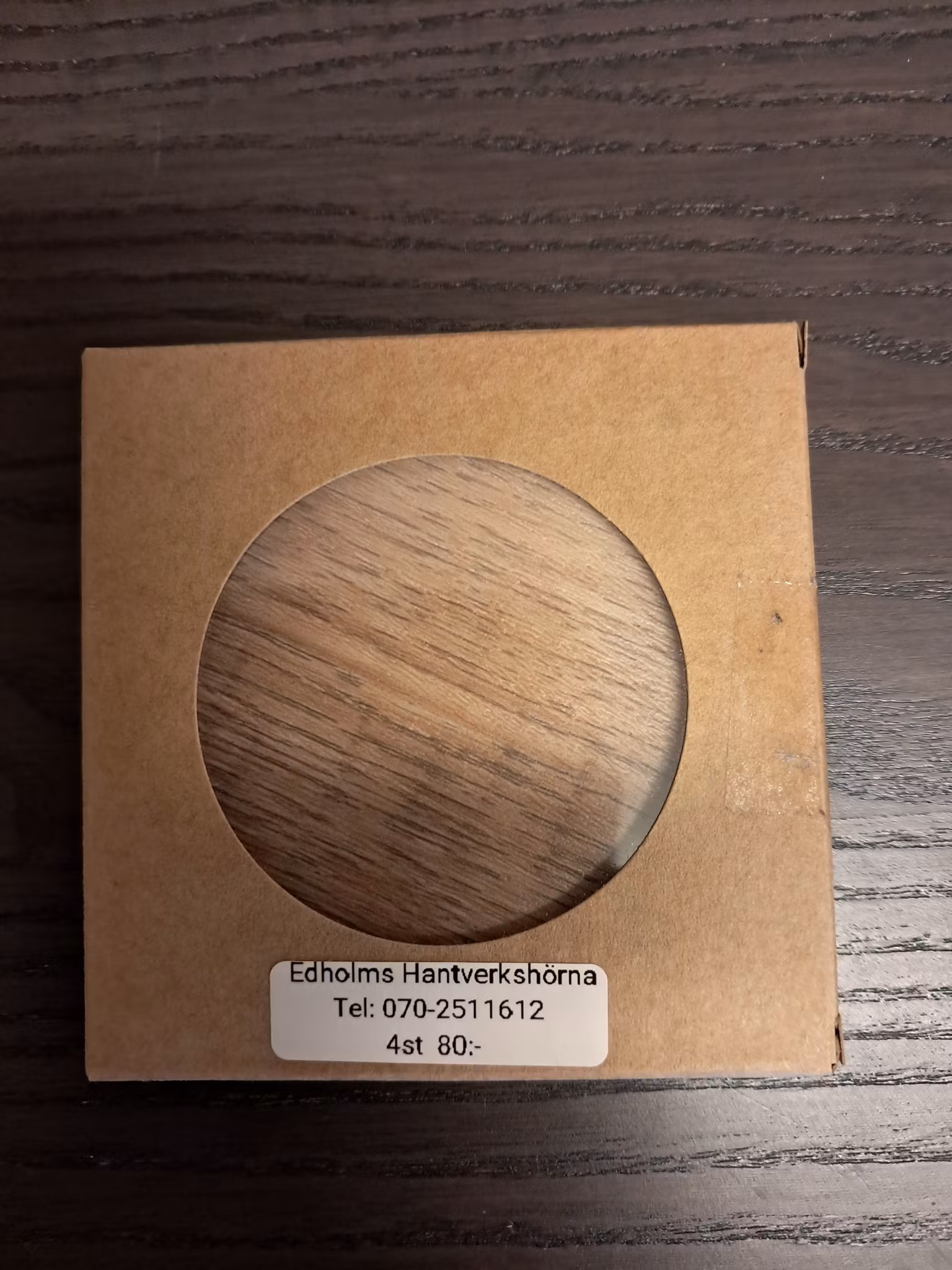 Handstansade runda glasunderlägg med tyg på baksidanMått: 9 cm i diameterMaterial: vinyl Förpackningen innehåller 4 st glasunderlägg