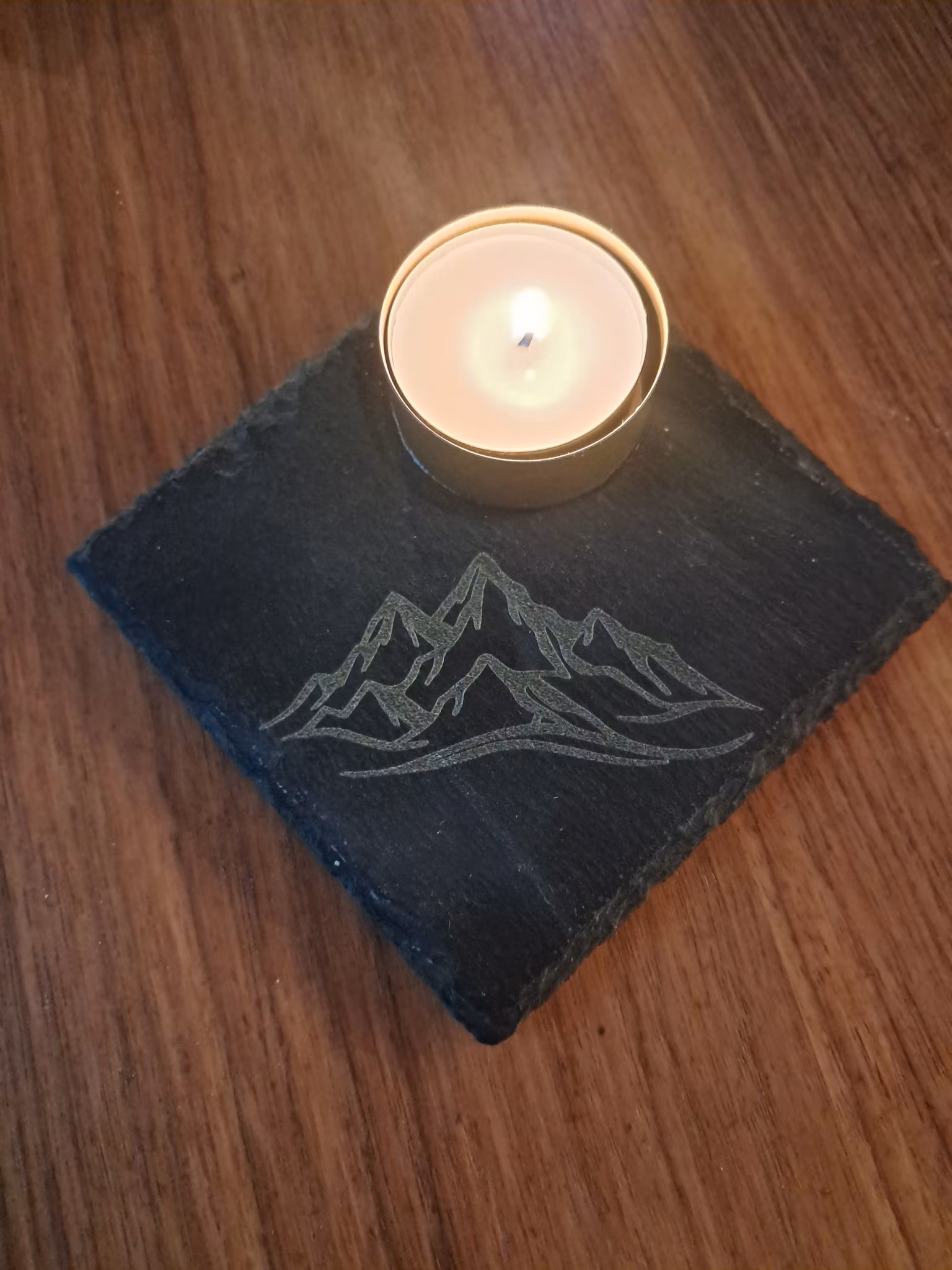 Ljusfat med bergMaterial: skiffer Mått ca 10 x 10 cm