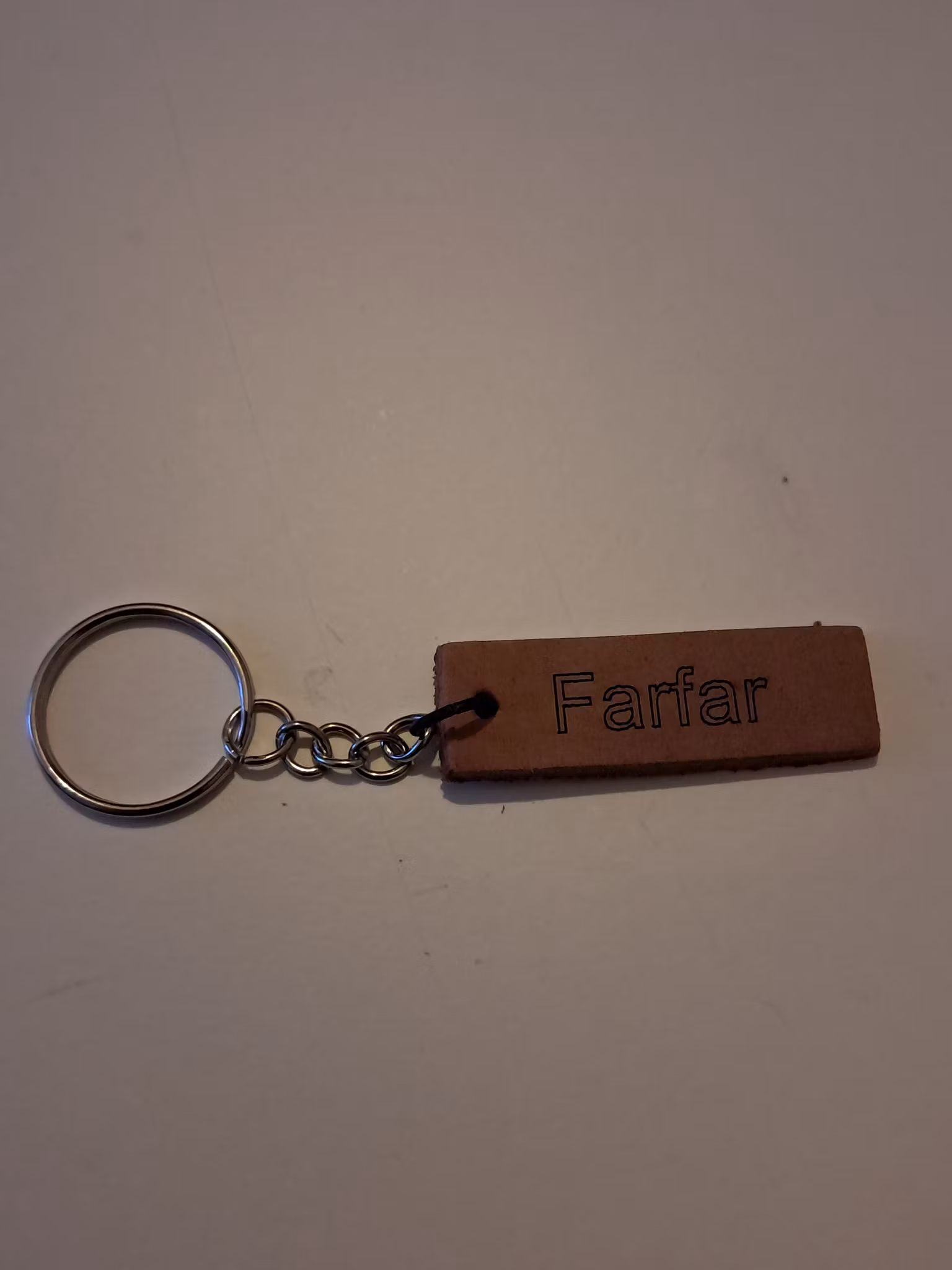 Material:läder Läderbiten är ca 5× 1,5 cm och mellan 2- 4 mm tjock Viss nyansskillnad kan förekomma Om man önskar valfri text så maila eller smsa