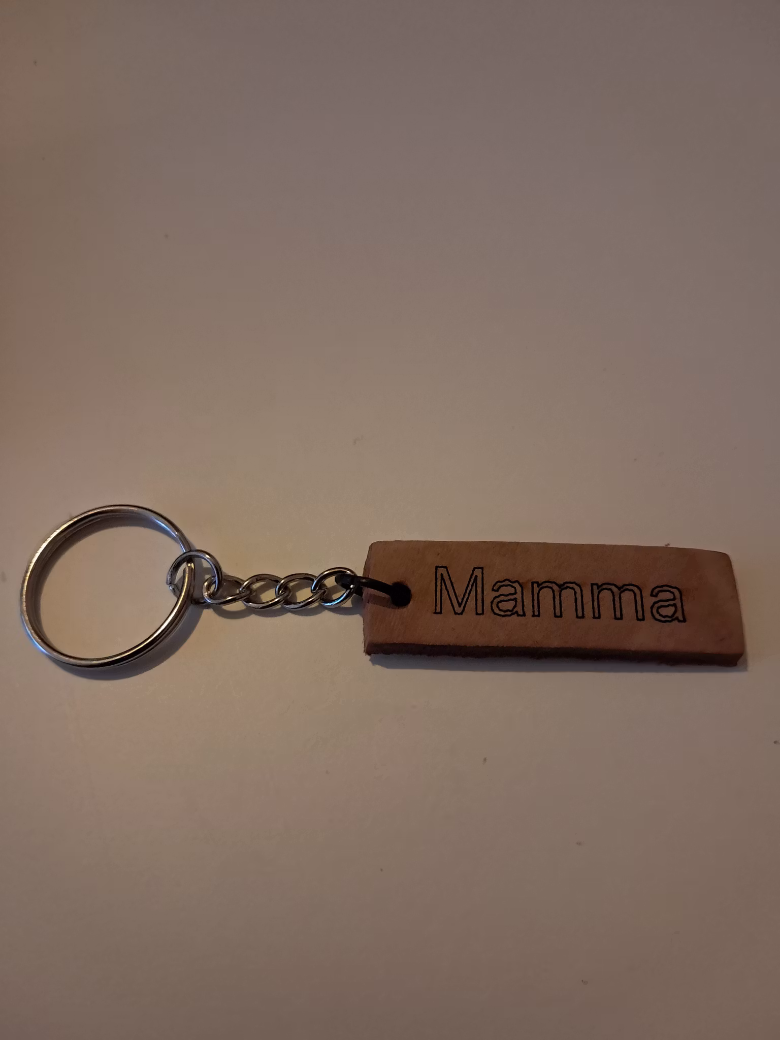 Material:läder Läderbiten är ca 5× 1,5 cm och mellan 2- 4 mm tjock Viss nyansskillnad kan förekomma Om man önskar valfri text så maila eller smsa