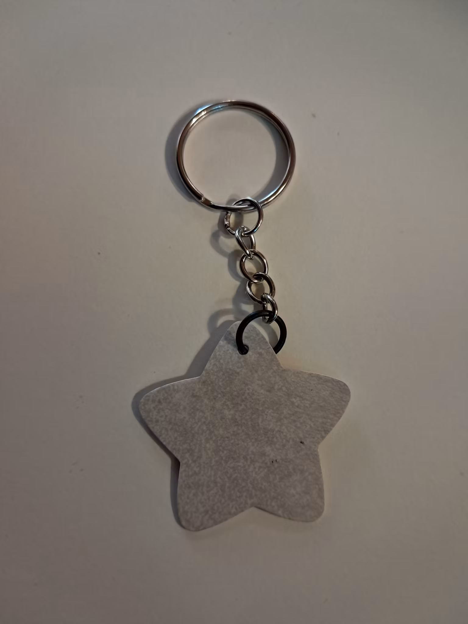 Handstansade nyckelringar av återbrukat material Material: vinylLevereras i slumpmässig färg Om man har önskemål på färg så skicka ett mail eller sms