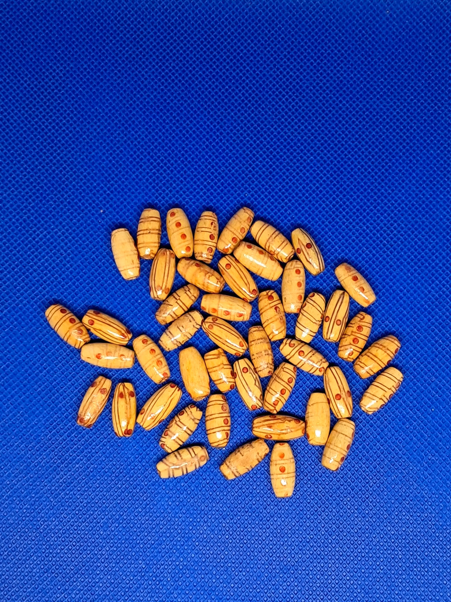 Ovala prickiga/ randiga pärlorMaterial: träDet är ca 40 st i en påse
