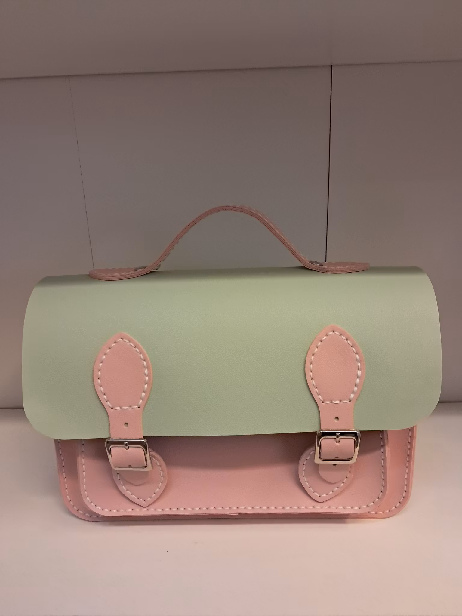 Handsydd grön/rosa väska med ställbar axelrem och magnetspännen