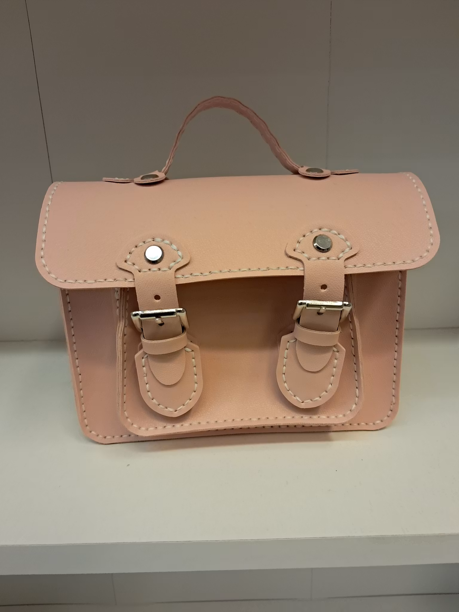 Handsydd rosa väska med ställbar axelrem och magnetspännen