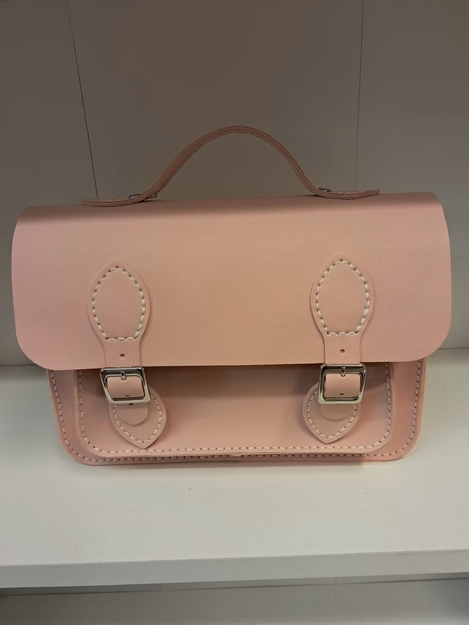 Handsydd rosa väska med ställbar axelrem och magnetspännen